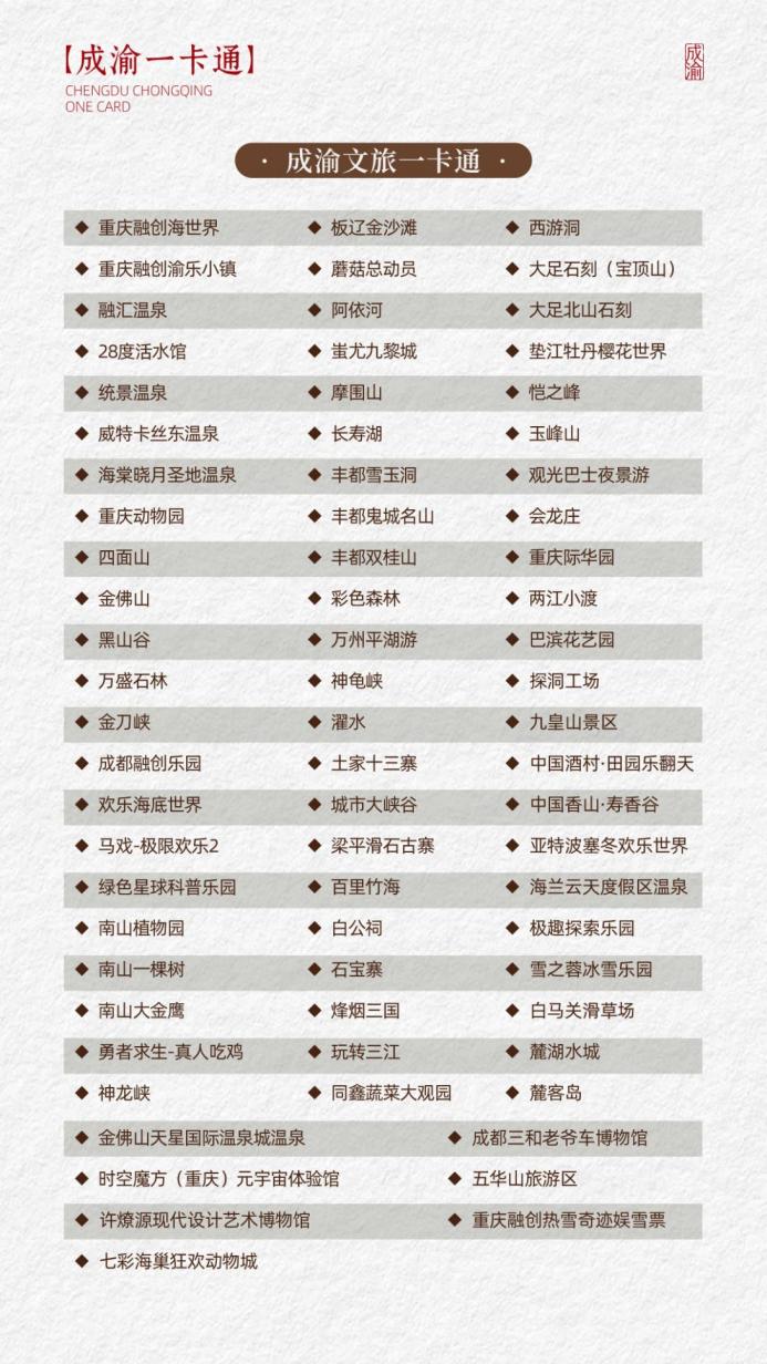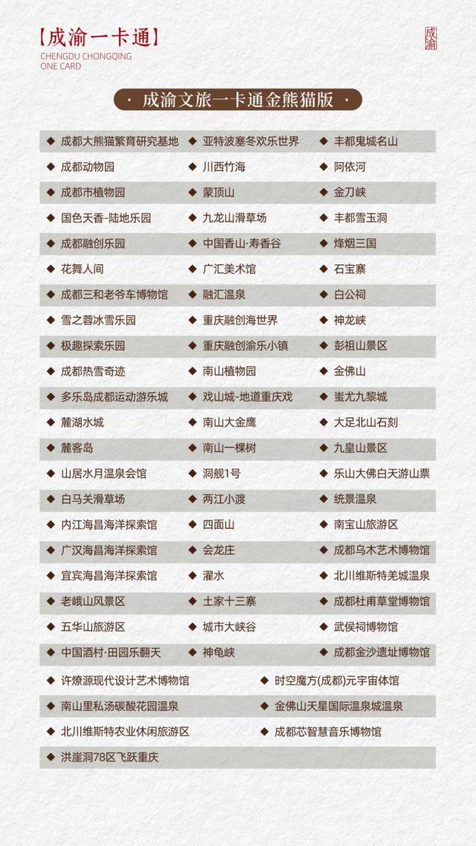 本次发布的精品线路覆盖多元旅游需求:“宽洪大量”都市之旅串联解放碑、太古里等核心商圈,“世界遗产川味之旅”融合青城山、大足石刻等自然遗产与川菜美食,“巴蜀红色印记之旅”聚焦红岩、邓小平故里等红色地标,“渝你相约”Citywalk则解锁半山崖线等城市新兴打卡点。特别推出的成渝一卡通,涵盖两地融创乐园、大熊猫繁育研究基地、统景温泉等超50个热门景区及文旅项目,实现“一卡畅游双城”。
