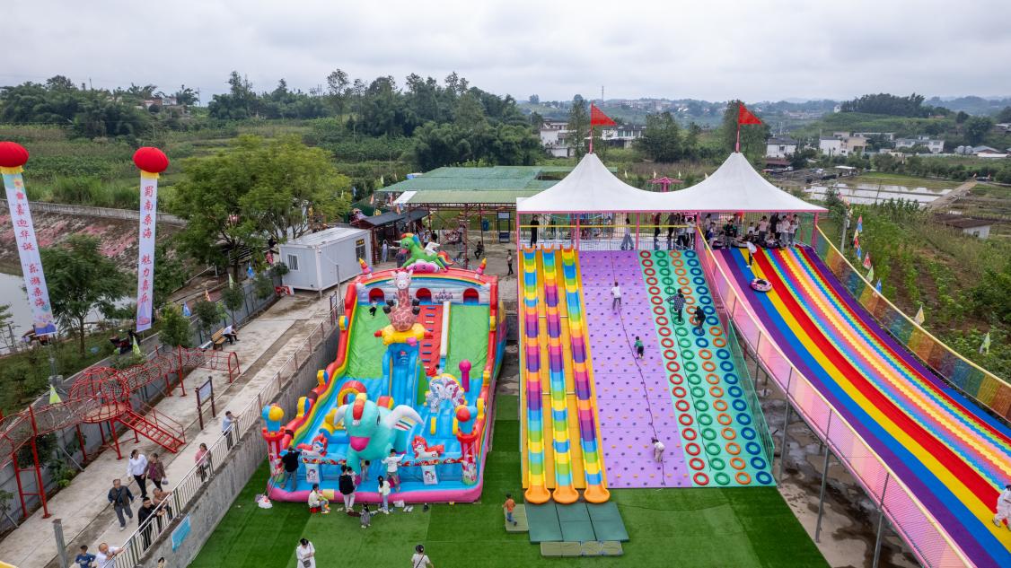 10月1日,四川高县嘉乐镇“‘嘉’迎华诞・‘乐’游桑海”桑海乐园开园活动在人民村举行。活动融合亲子游乐与蚕桑文化特色,通过开幕式、剪彩仪式、大蛋糕分享、文艺展演、集章免单、汉服NPC巡游等多种形式,搭配19项游乐设施,打造沉浸式乡村文旅体验。