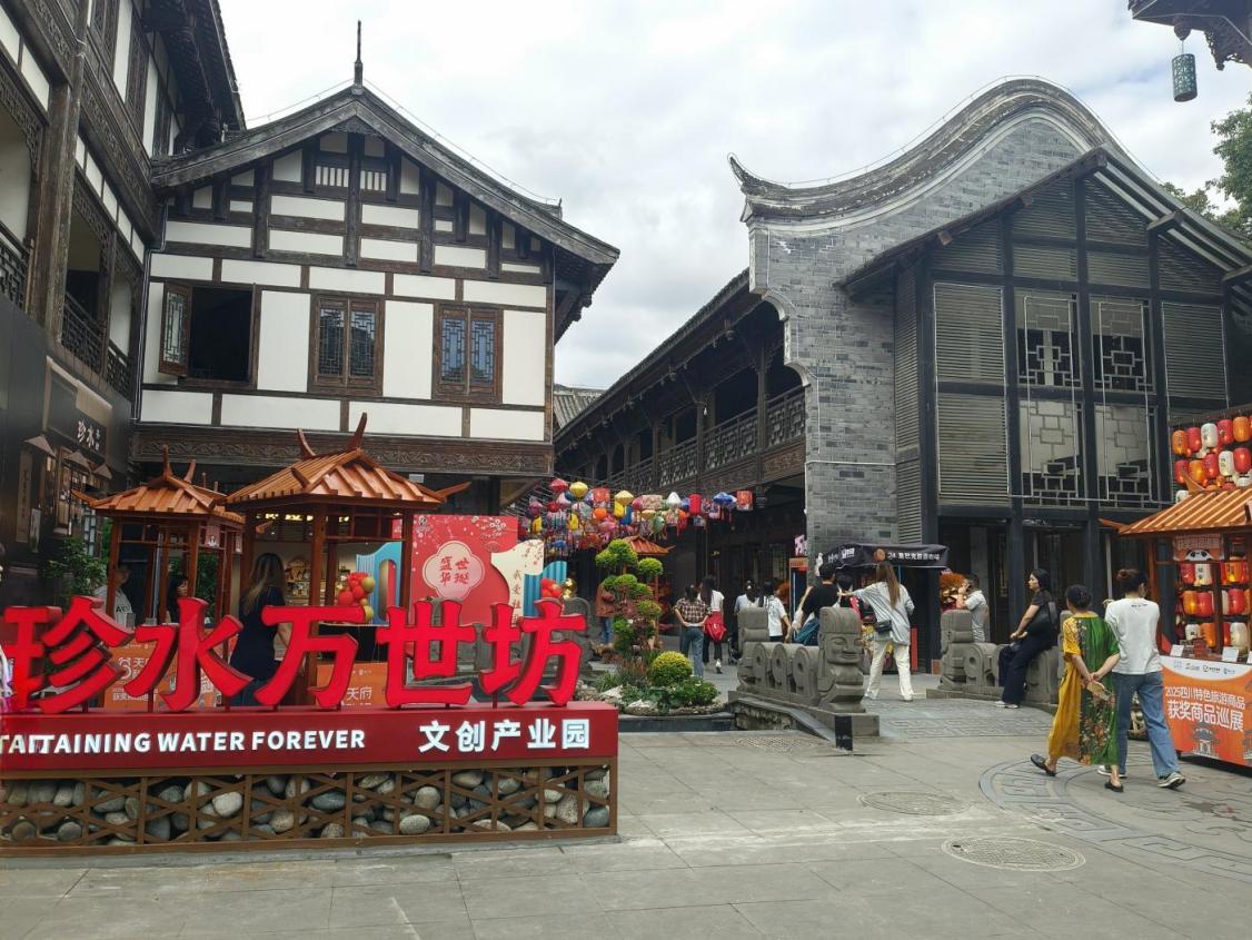 10月1日,在国庆佳节的喜庆氛围中,都江堰“珍水万世坊”文创产业园正式开园。园区总占地12861.28㎡,是集创意设计、产品转化、消费场景和产业反哺于一体的文创产业园区。