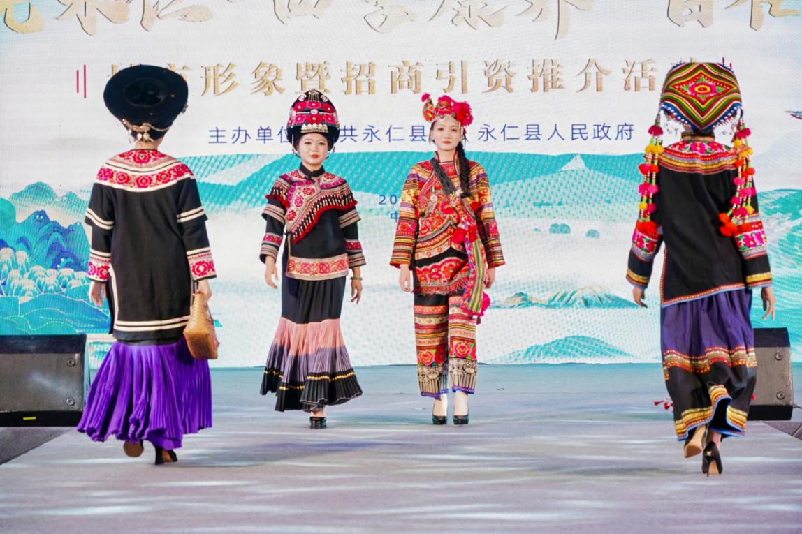 活动期间,《羊皮鼓舞》《家在阳光城》《彝家欢歌》《月亮升起来》等歌舞和民俗、文创、盛装系列走秀轮番上演,将“阳光永仁·四季康养·自在宜居”的生活具象化。