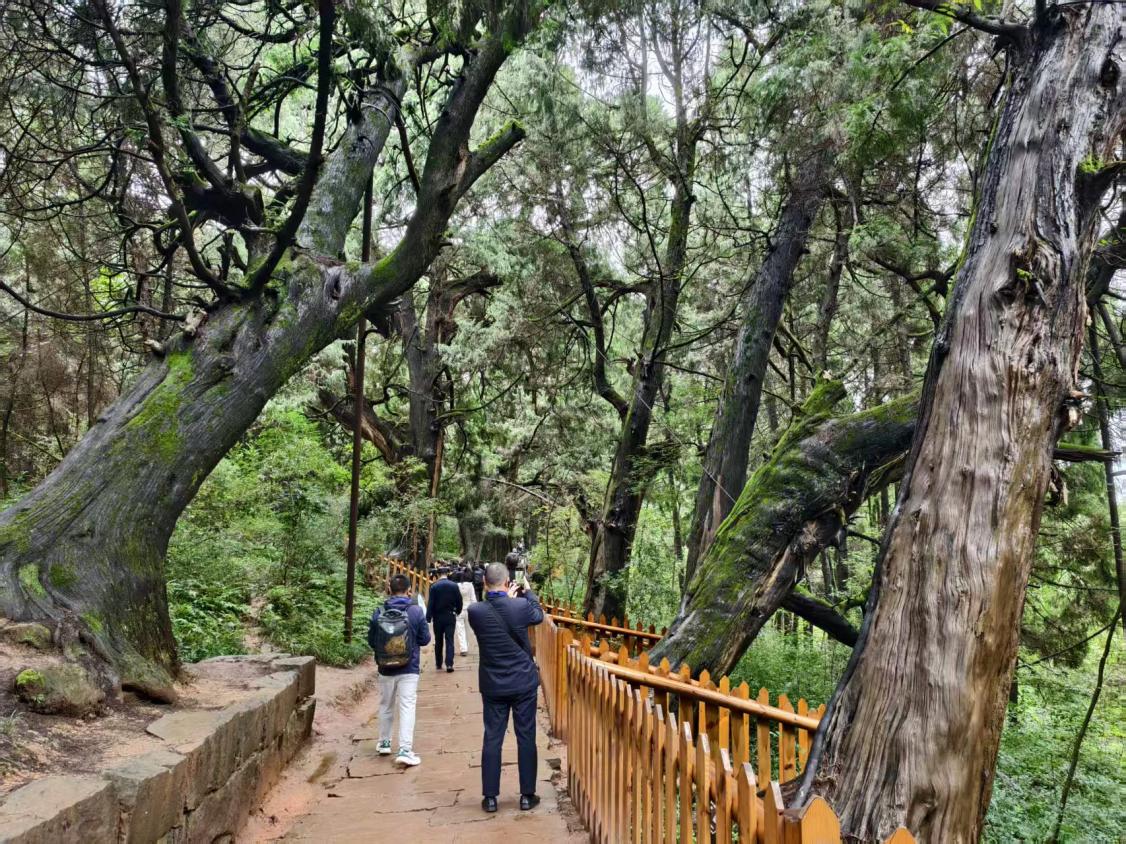 “剑阁柏”旁,55岁的生态护林员贾少明用朴实的话语分享巡山护柏的坚守故事:“我从40来岁开始当护林员,负责管护380多棵古柏,十多年来没有一颗古柏受到过严重伤害。”近年来,持续增长的游客带动了当地旅游业的发展和乡村振兴。贾少明表示,一定要继续精心守护好这些古柏,让它们继续造福后人。