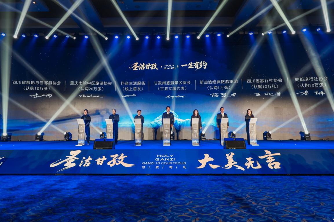 发布会上,甘孜文旅与抖音生活服务就首发合作进行签约,共同携手打造线上传播与交易渠道。同时,来自川渝、珠三角、长三角等主要客源城市的旅行商社踊跃认购终身制门票达60万张,彰显了业界与大众对甘孜文旅发展潜力的高度认可。